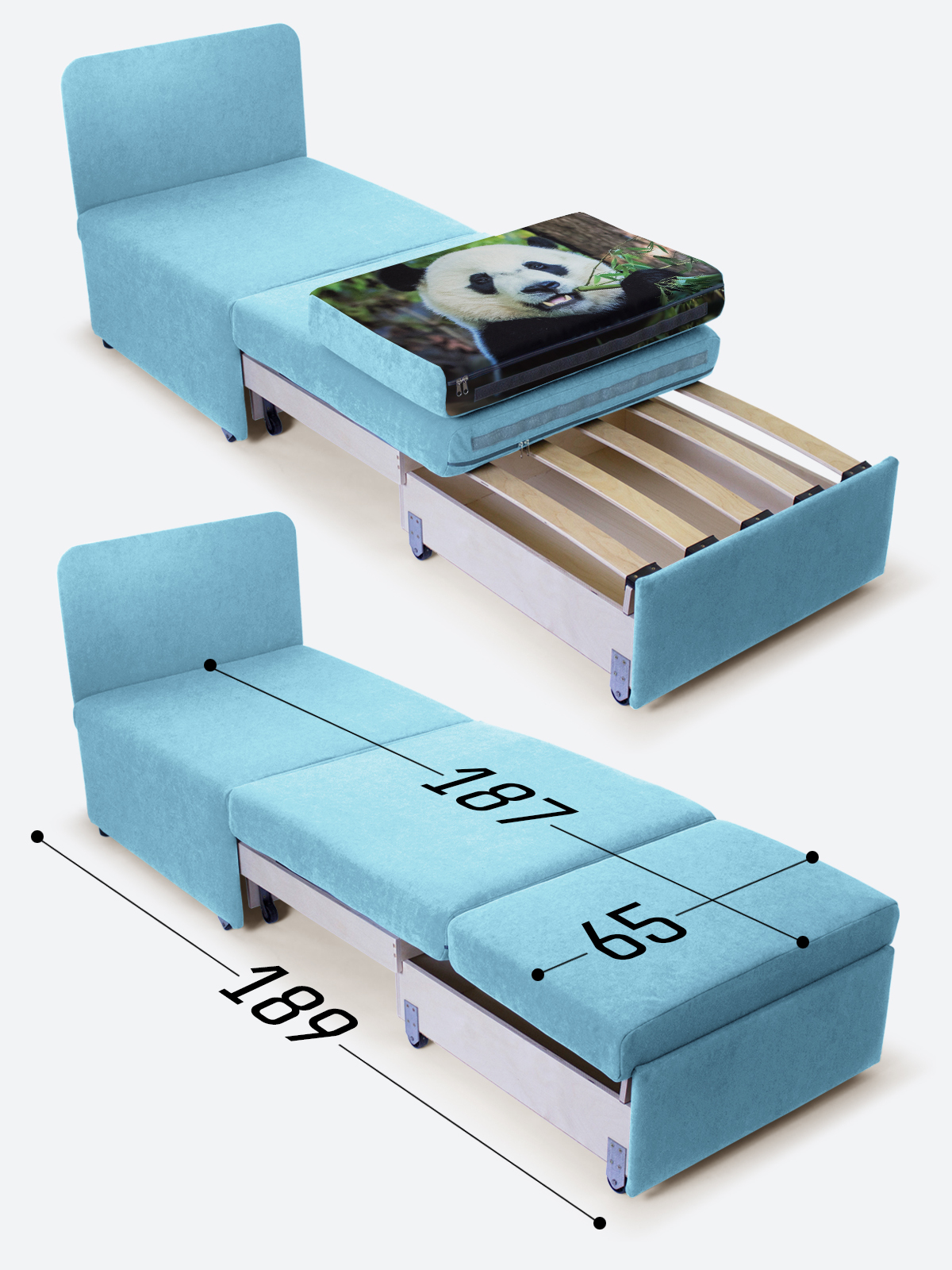 - в разложенном виде - 65х189х35;