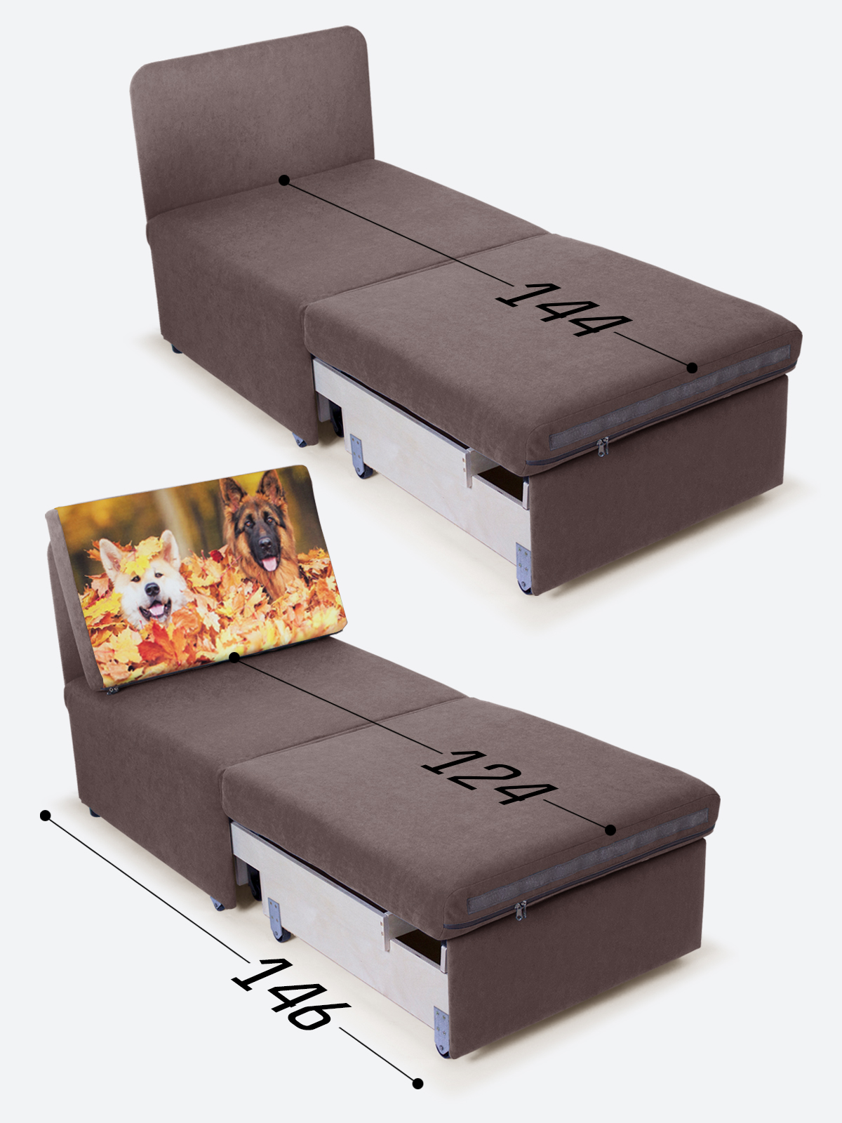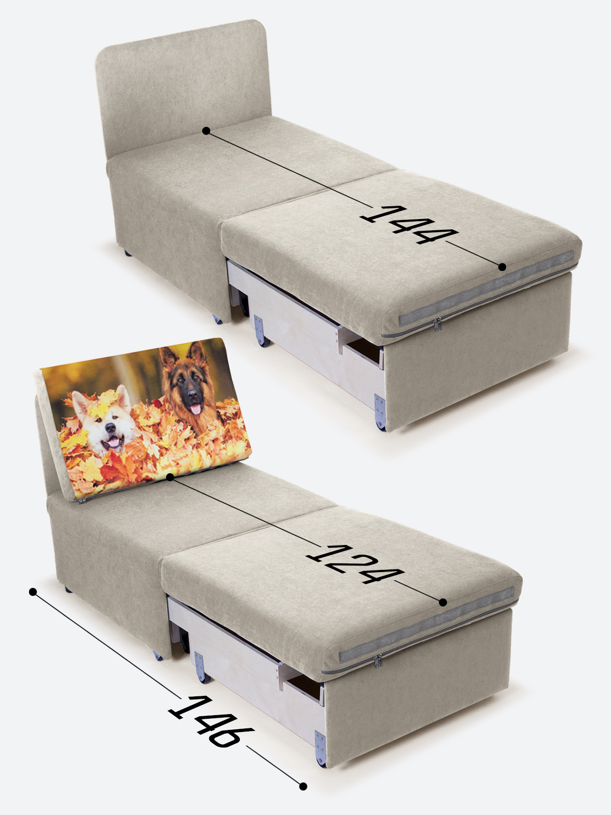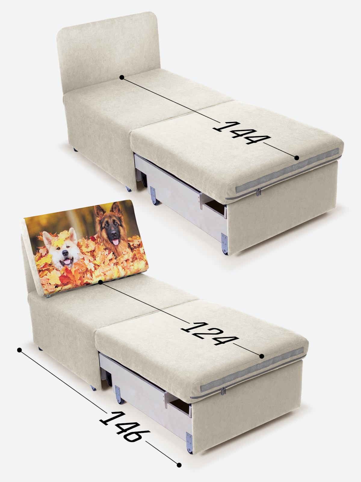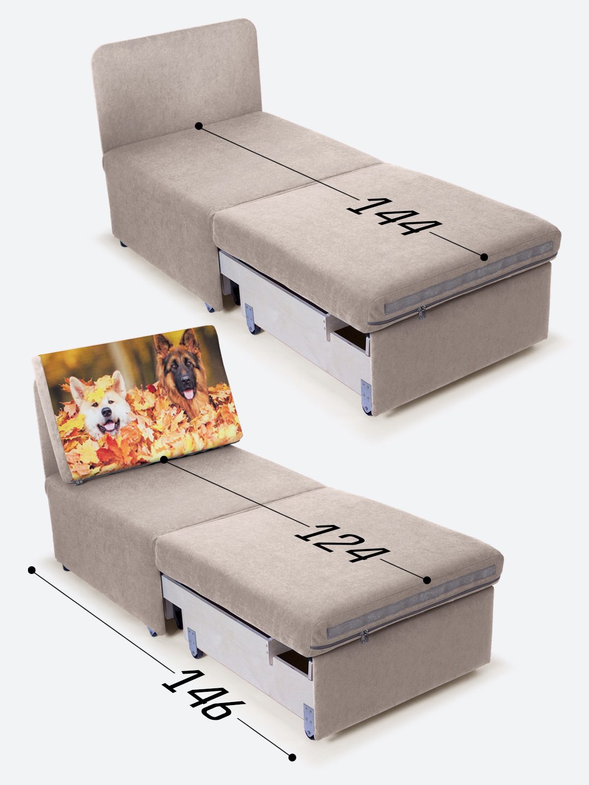 - спальное место, когда кресло разложено на 2/3 длины (кушетка/на вырост) - 65х144х35;