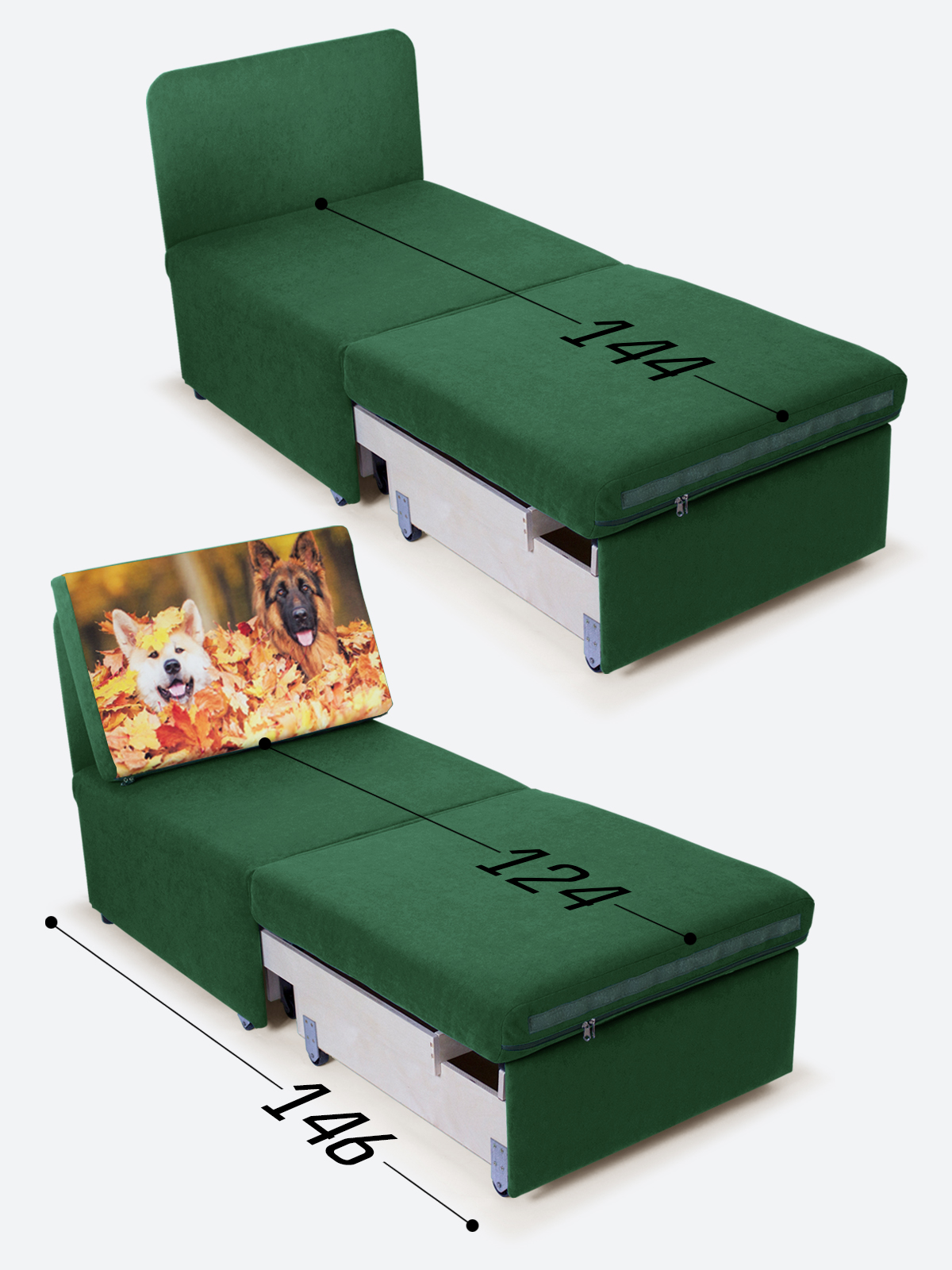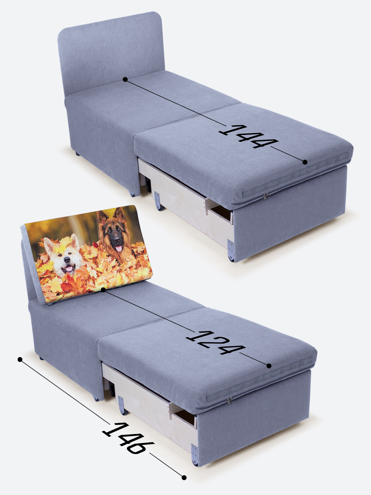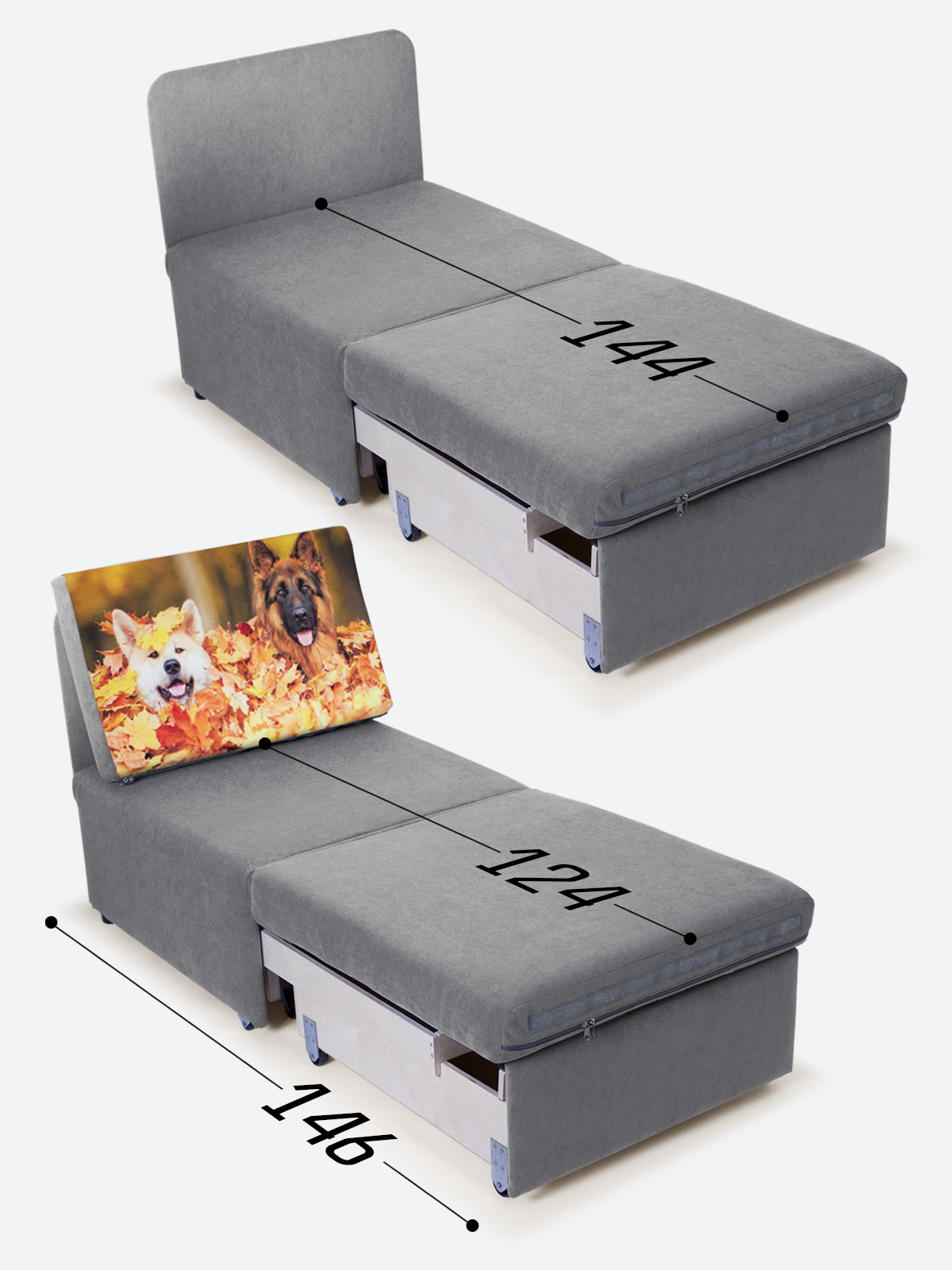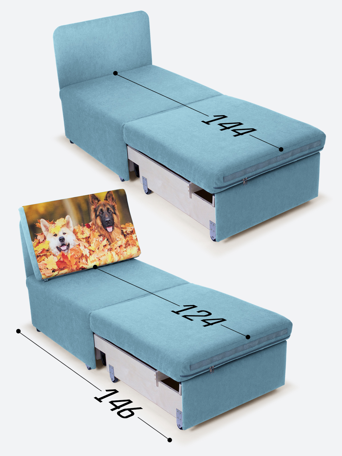 - спальное место, когда кресло разложено на 2/3 длины (кушетка/на вырост) - 65х144х35;