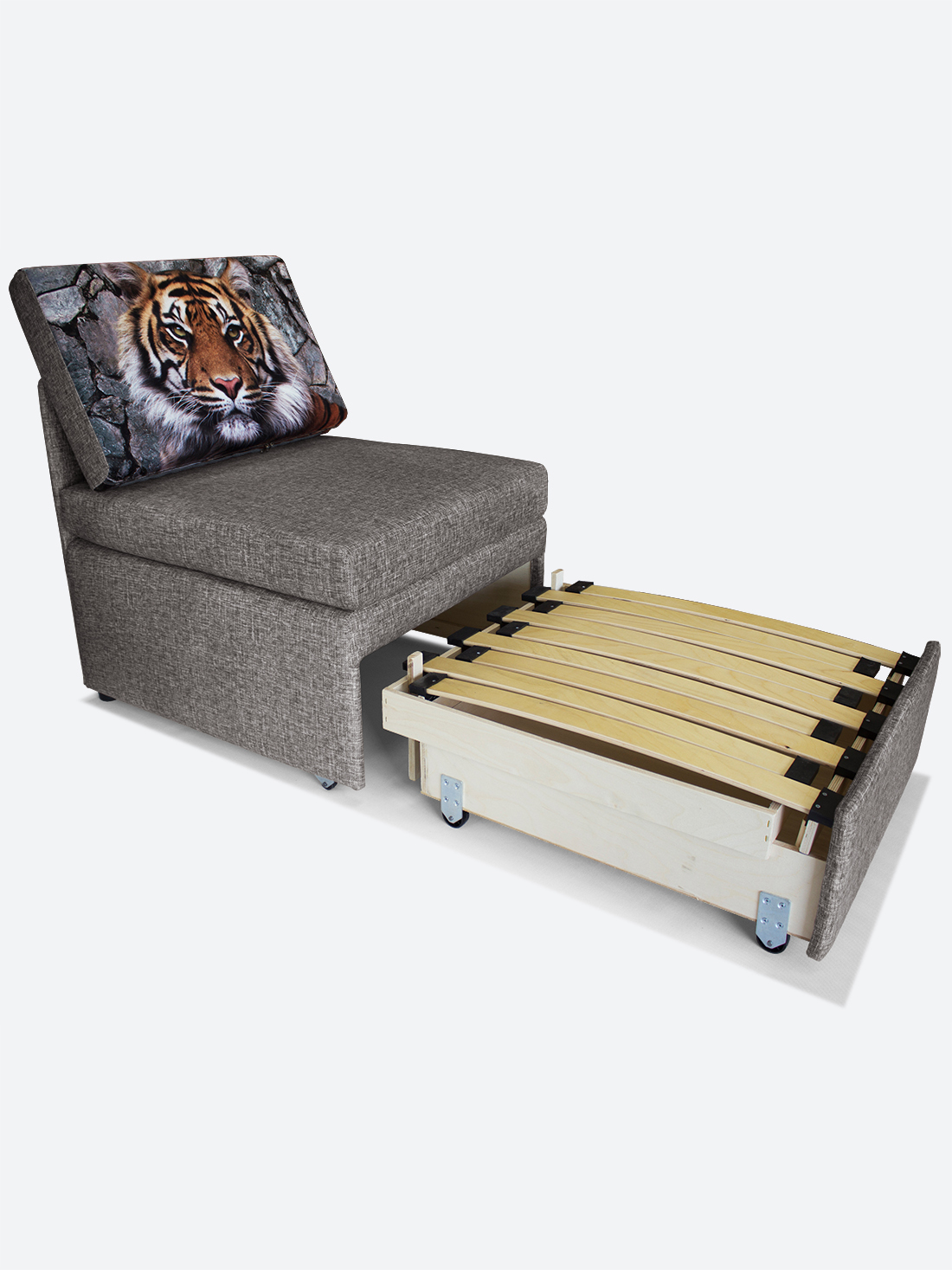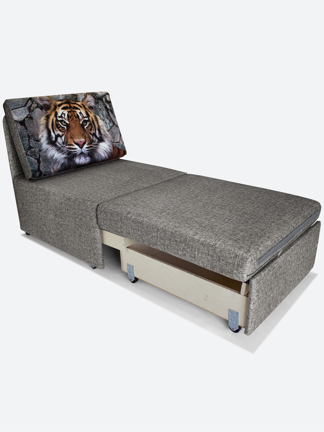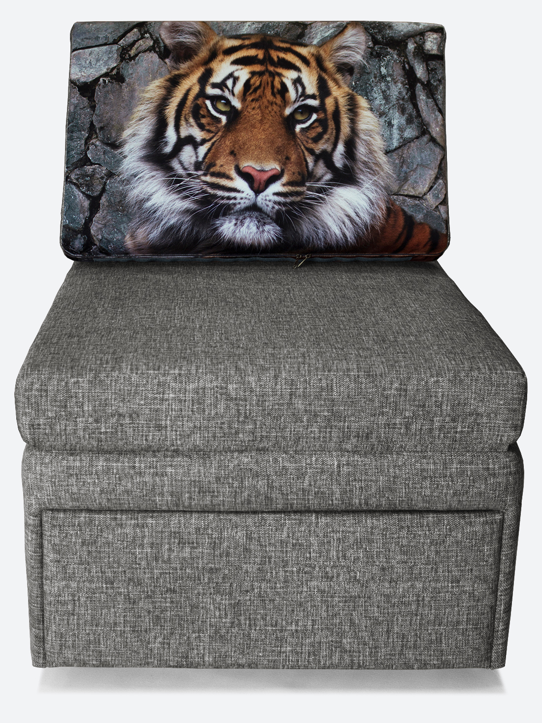 Материал обивки: Велюр Rich (Состав: полиэстер (PES) 100%. Показатель устойчивости к истиранию для велюра составляет 20 000 циклов). Купон велюровый "Тигр". Съемный чехол только на подушке спинки.