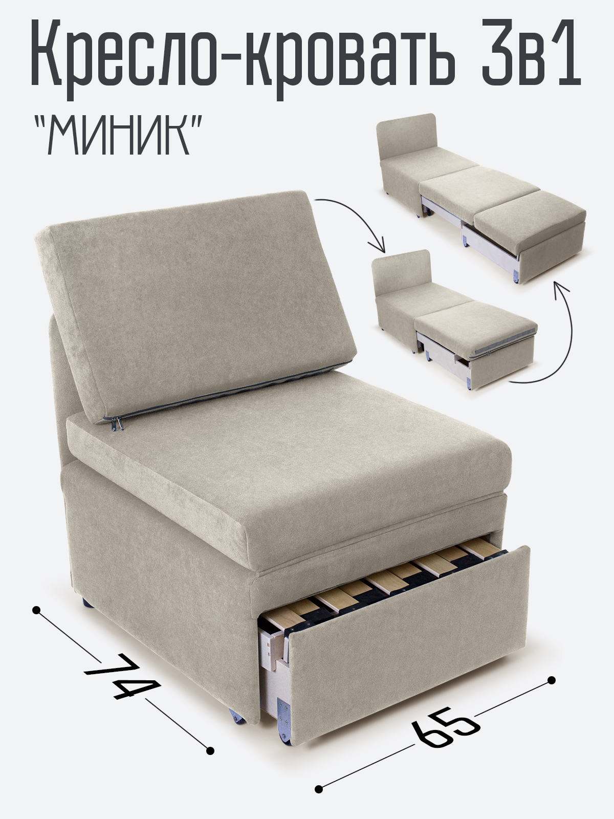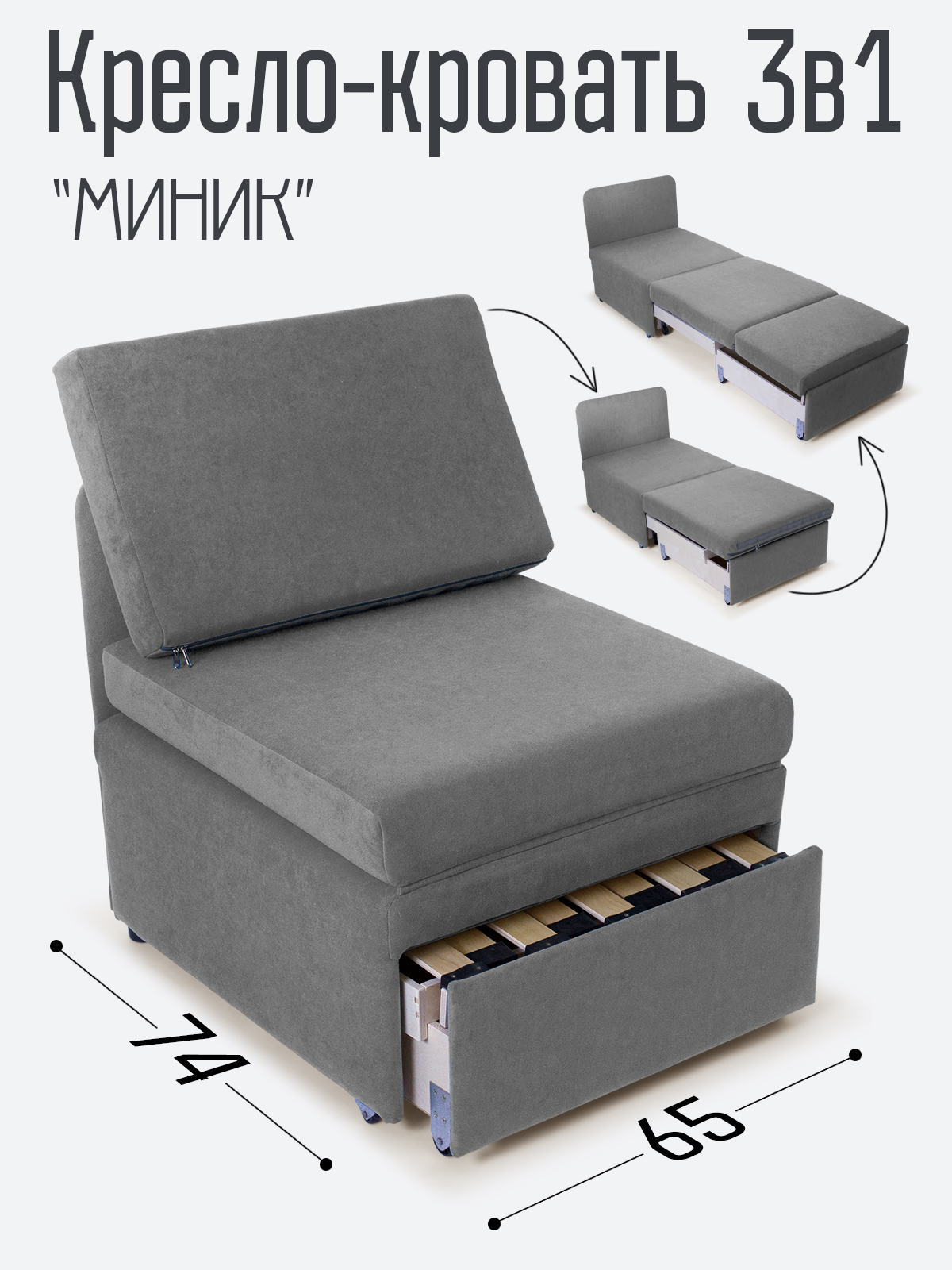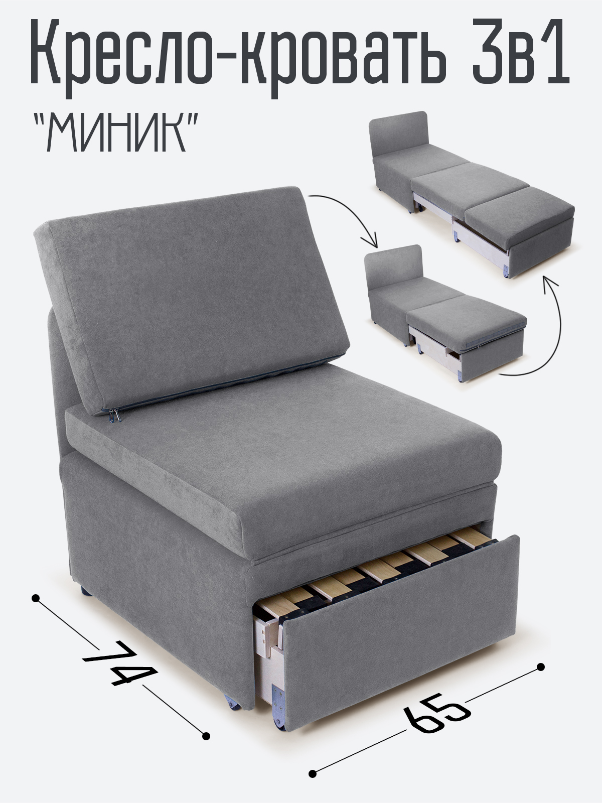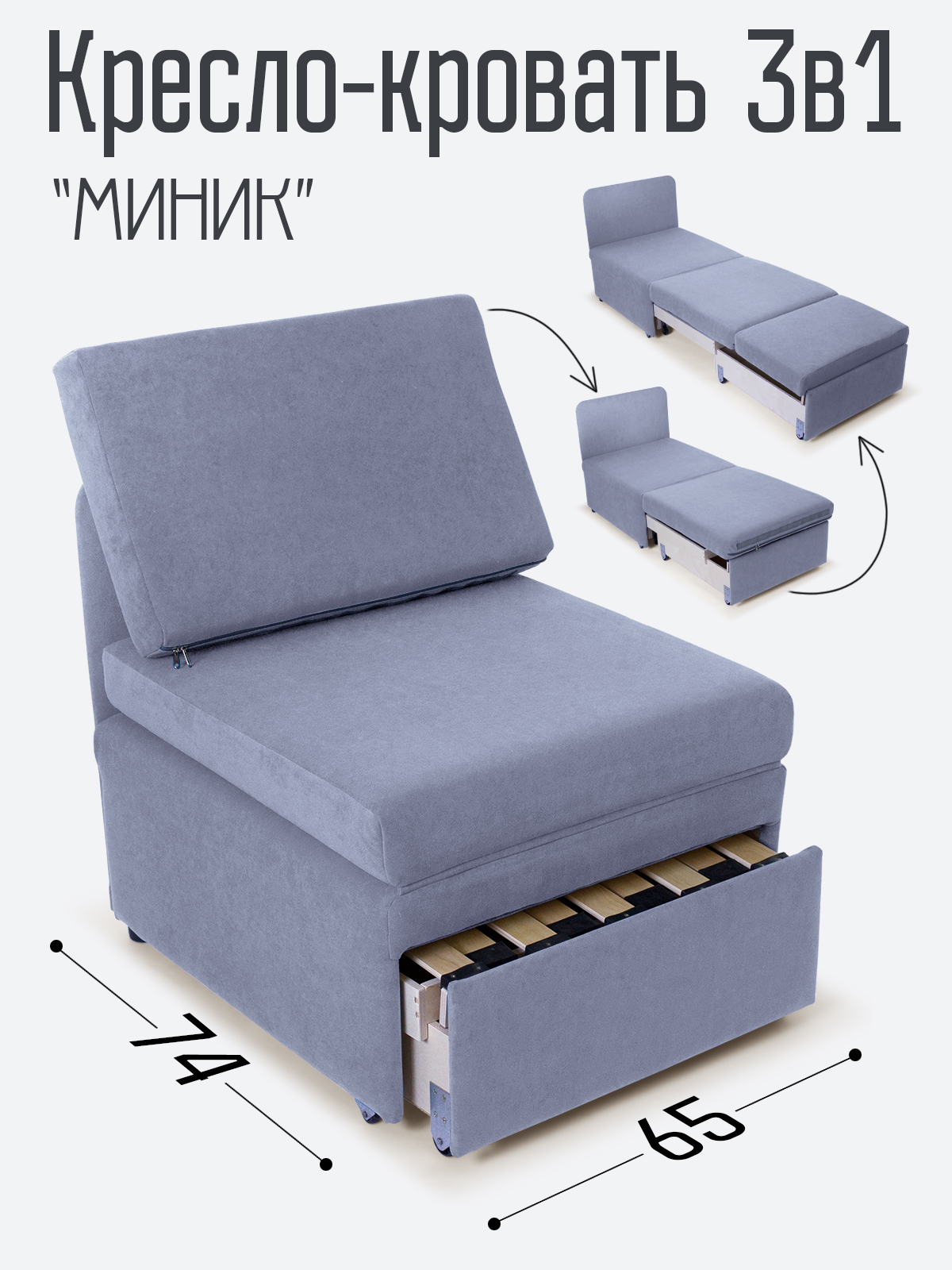 Кресло-кровать "Миник" 3в1: кресло, кровать, кушетка.