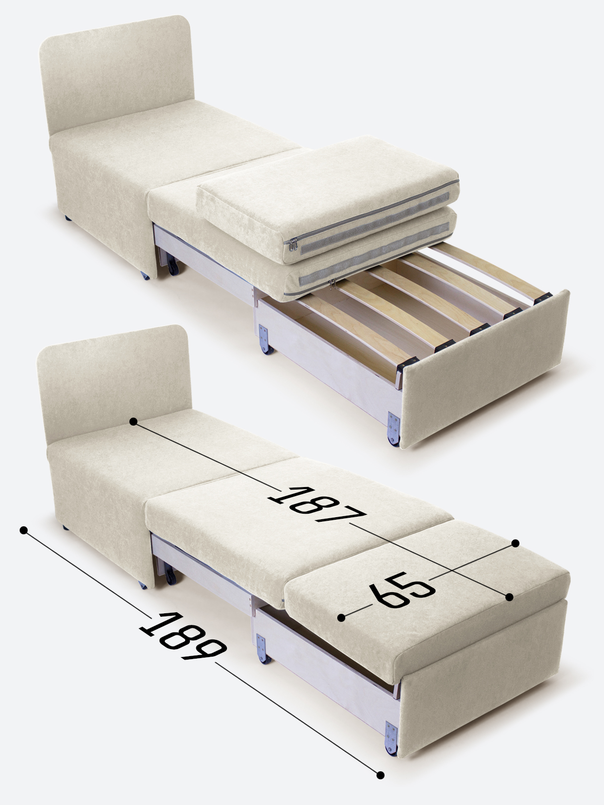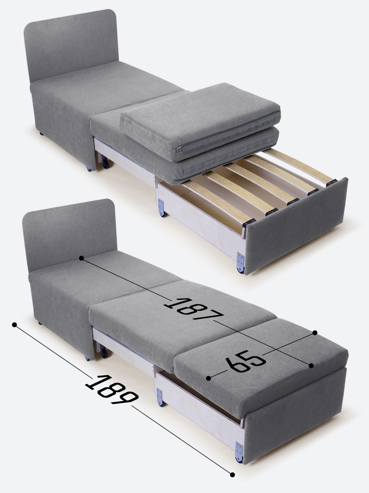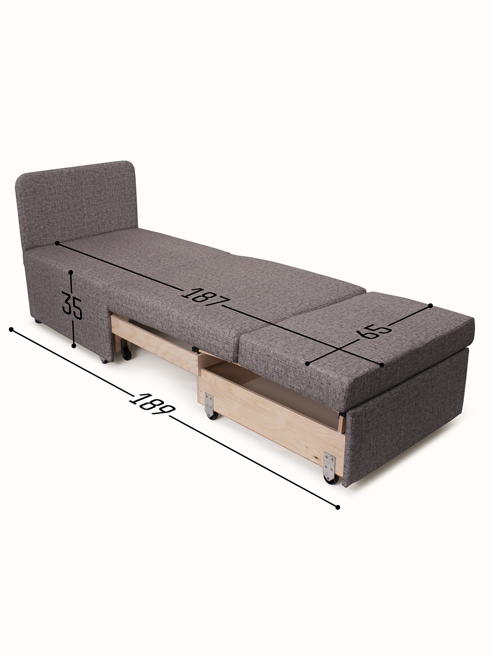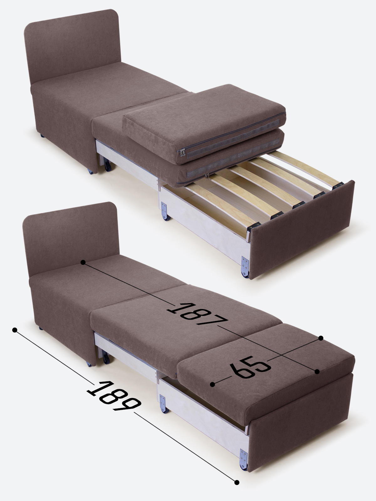 - в разложенном виде - 65х189х35;