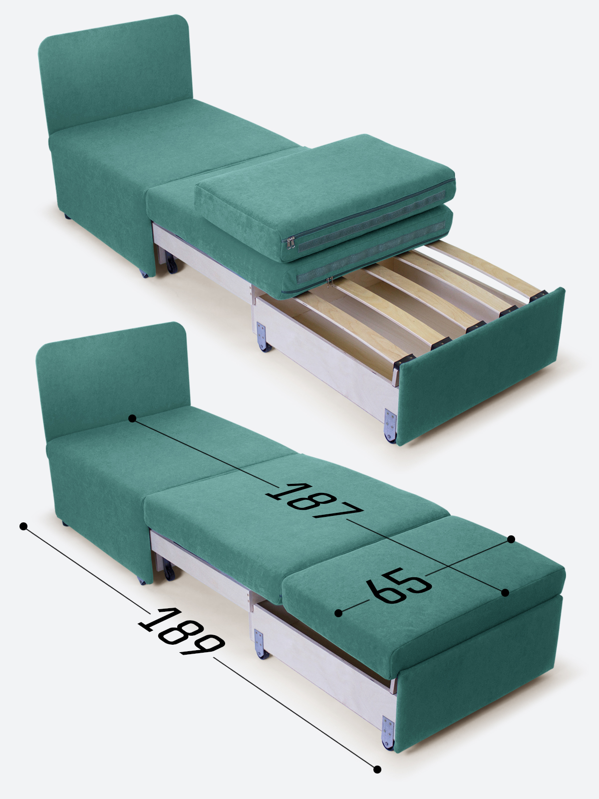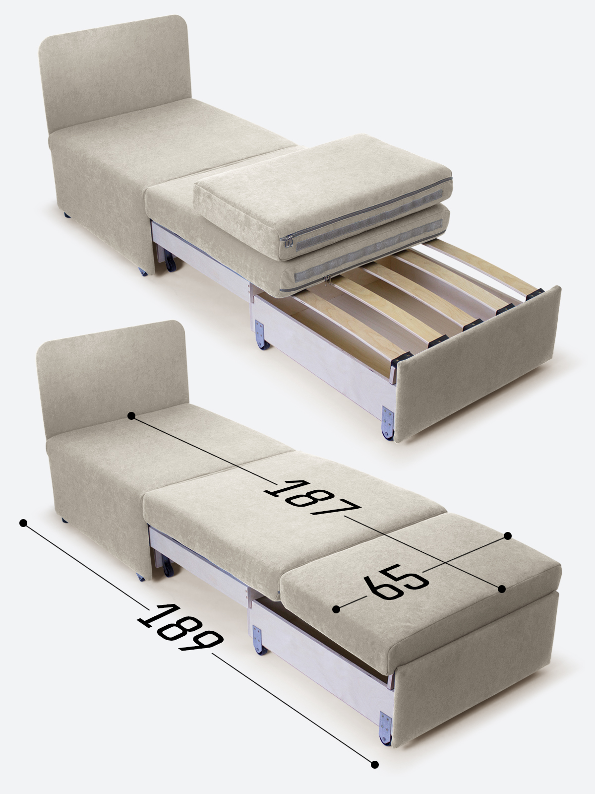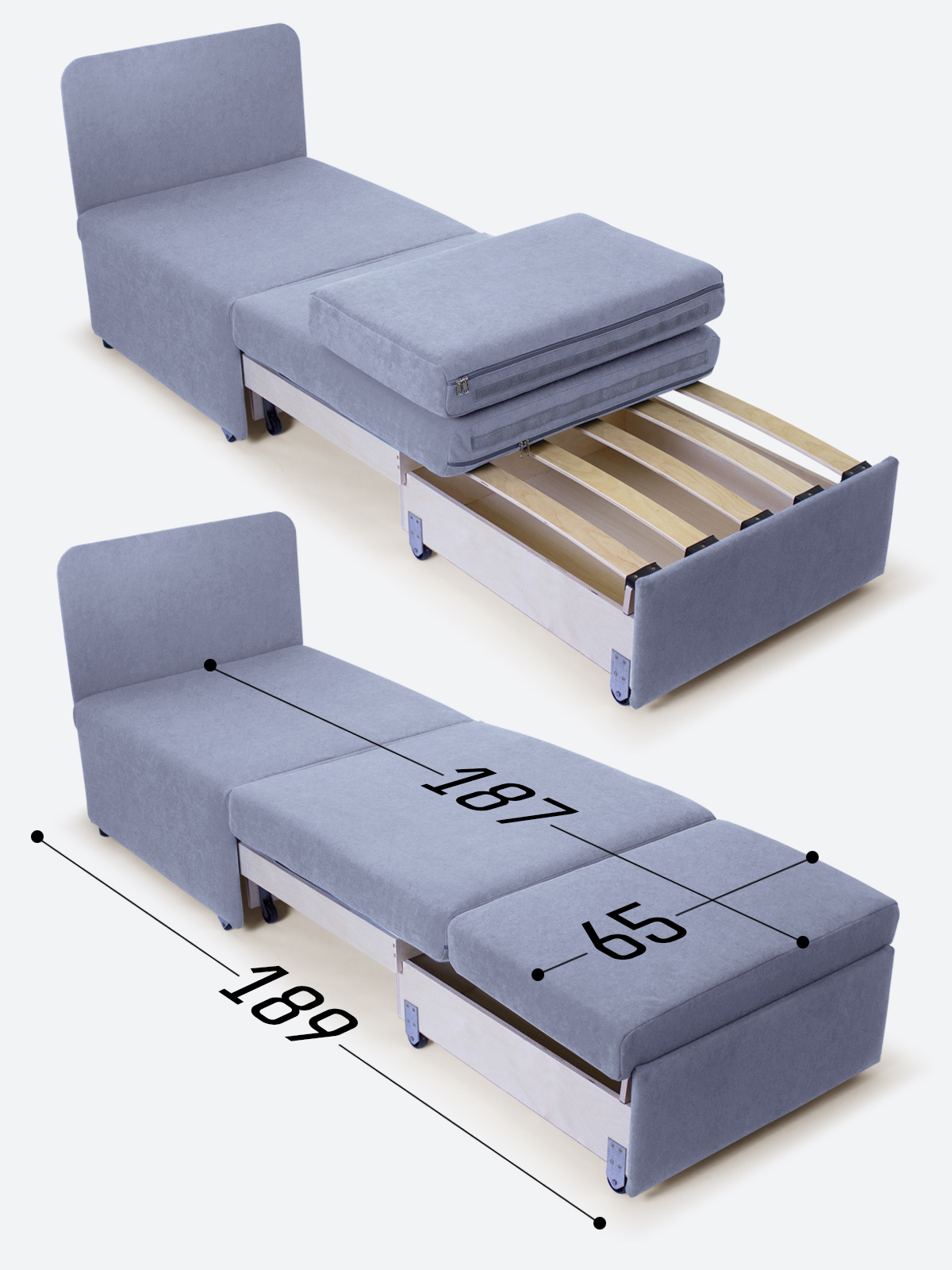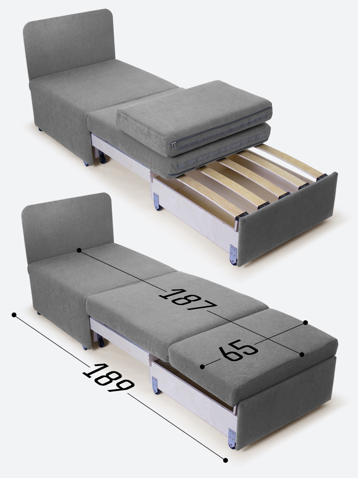 - в разложенном виде - 65х189х35;
