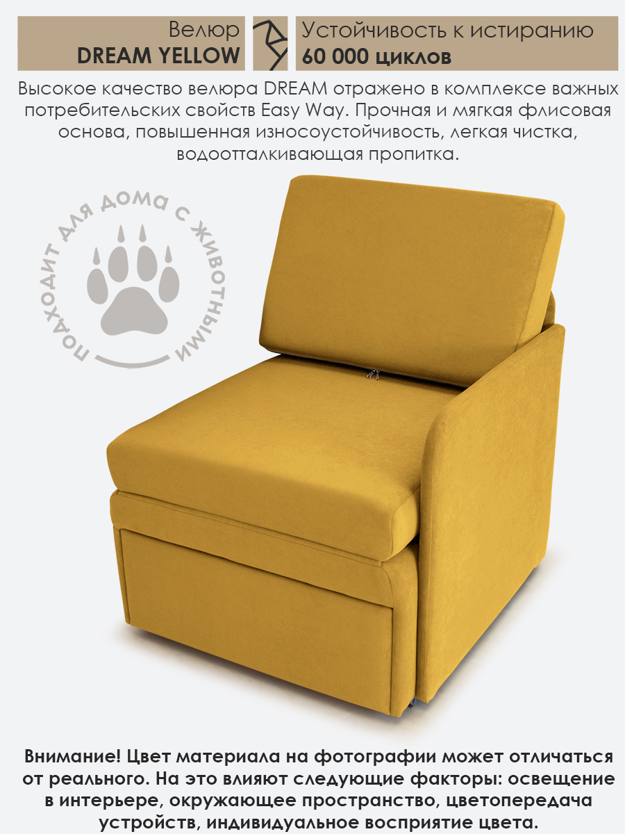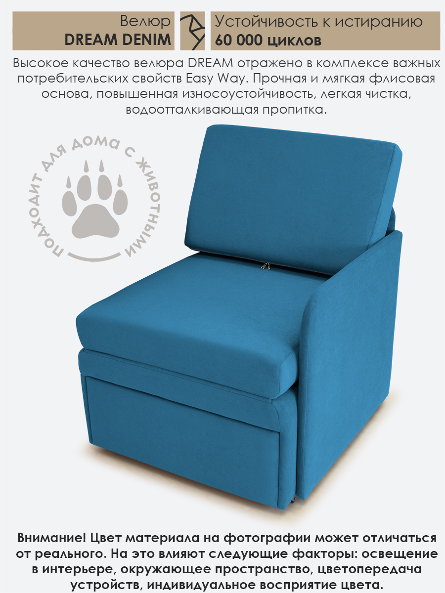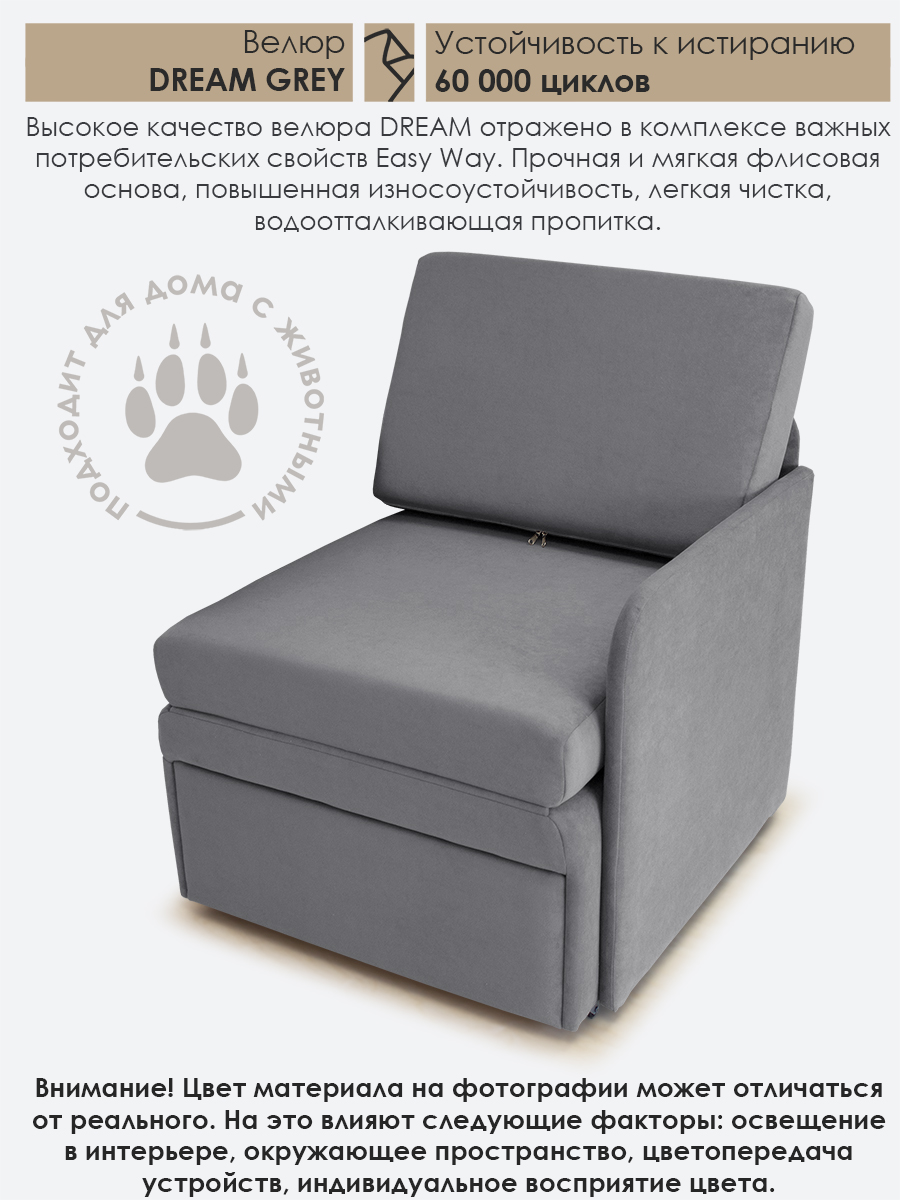 Обращаем Ваше внимание, что в разложенном виде кресло-кровать может скользить на глянцевом полу, т.к. стоит на двух ножках и колесах. Размер и конструкция колес не предполагает наличие стопора (тормоза). В комплект входят два антискользящих подпятника, которые нужно приклеить на задние ножки.