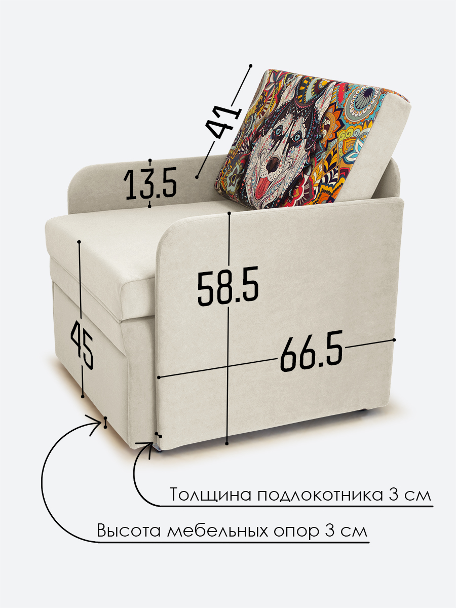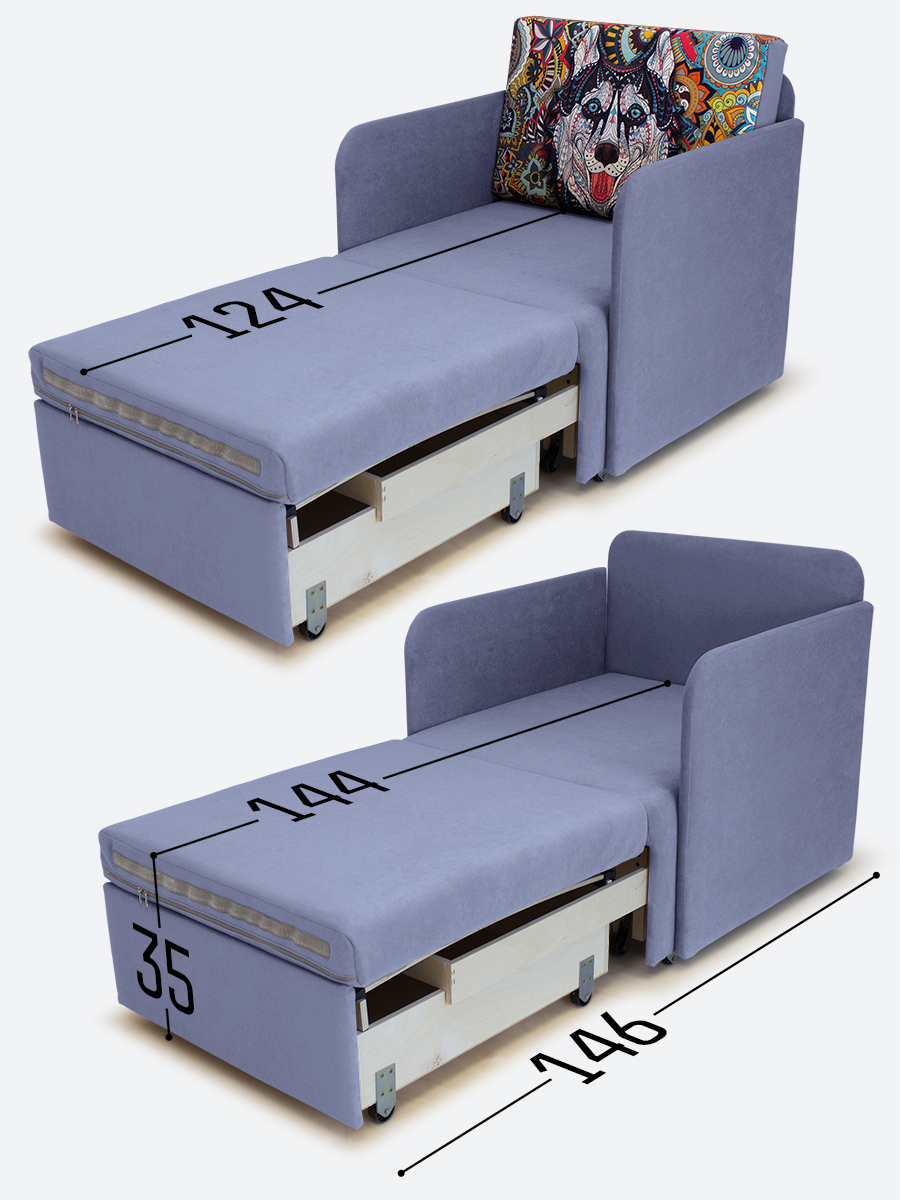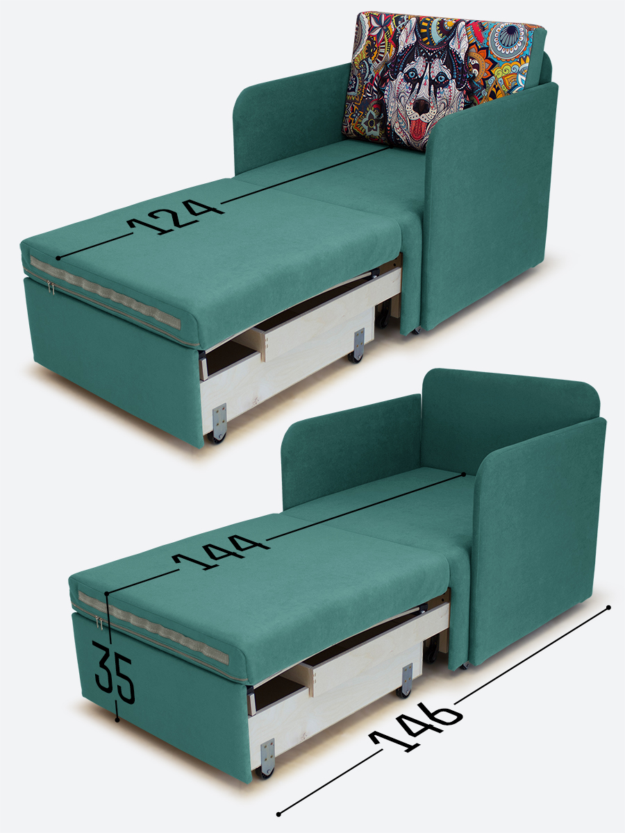 - спальное место, когда кресло разложено на 2/3 длины (кушетка/на вырост) - 65х144х35;