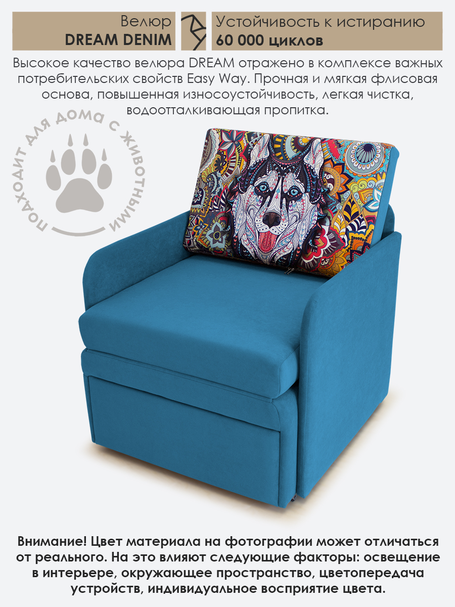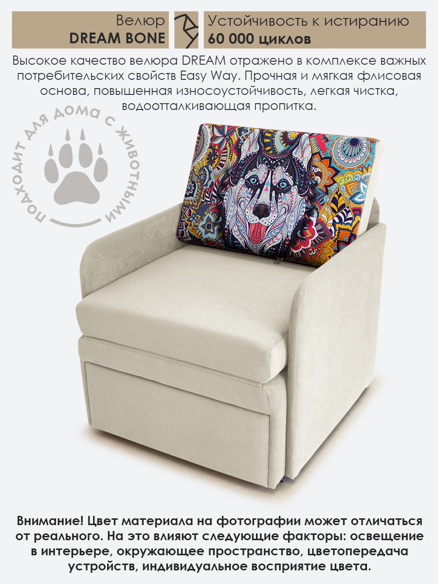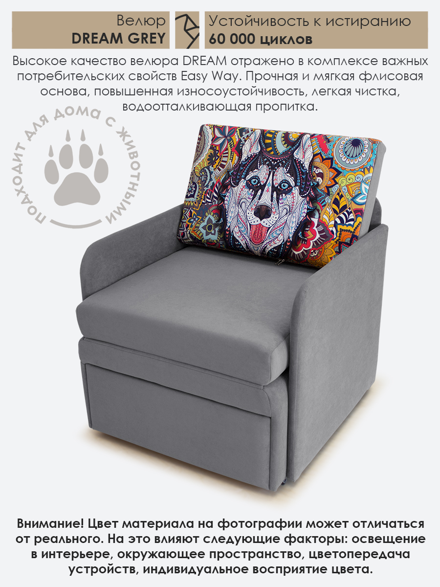 Материал обивки: Велюр CANDY (Состав: полиэстер (PES) 100%. Показатель устойчивости к истиранию для велюра составляет 50 000 циклов. Купон велюровый "Хаски". Съемный чехол только на подушке спинки.