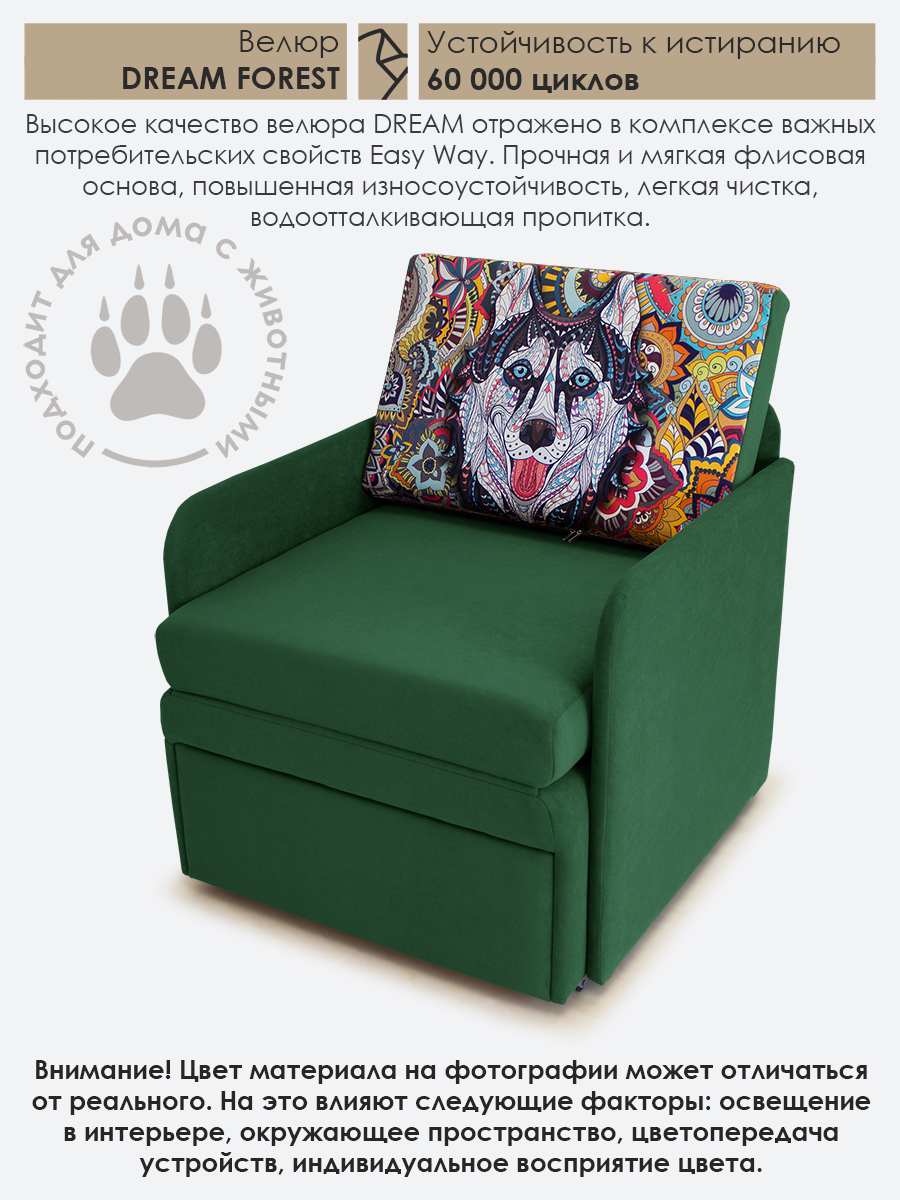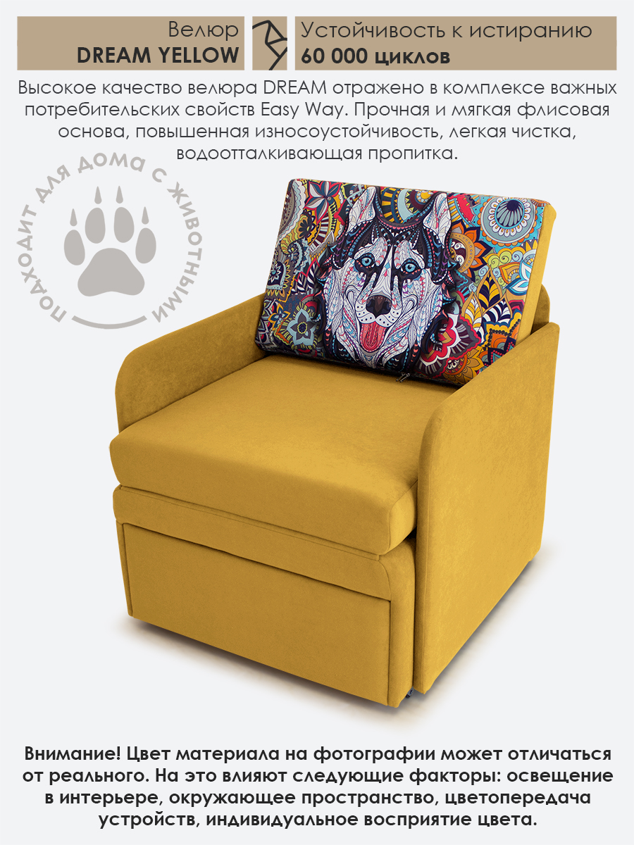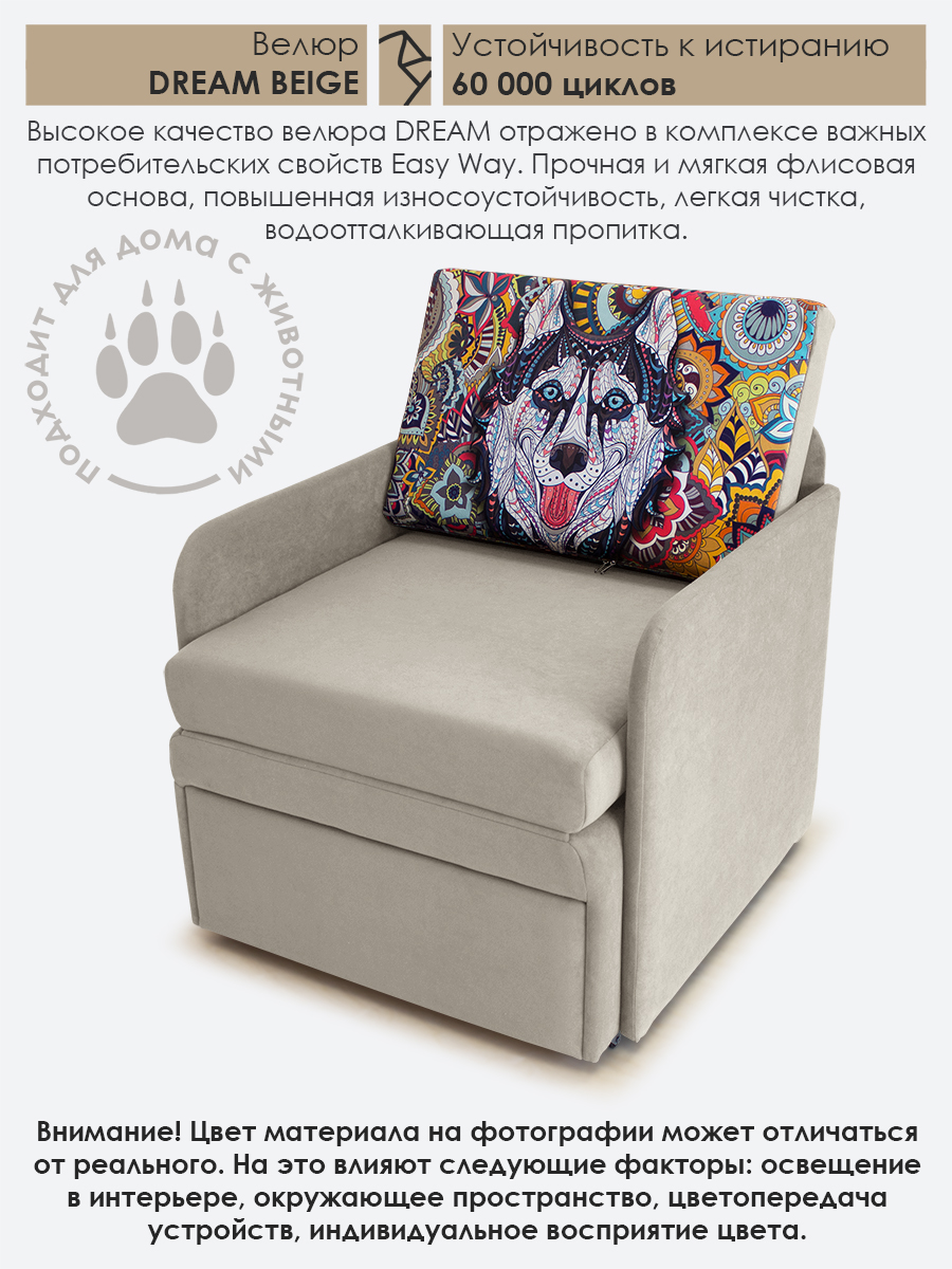 Материал обивки: Велюр CANDY (Состав: полиэстер (PES) 100%. Показатель устойчивости к истиранию для велюра составляет 50 000 циклов. Купон велюровый "Хаски". Съемный чехол только на подушке спинки.