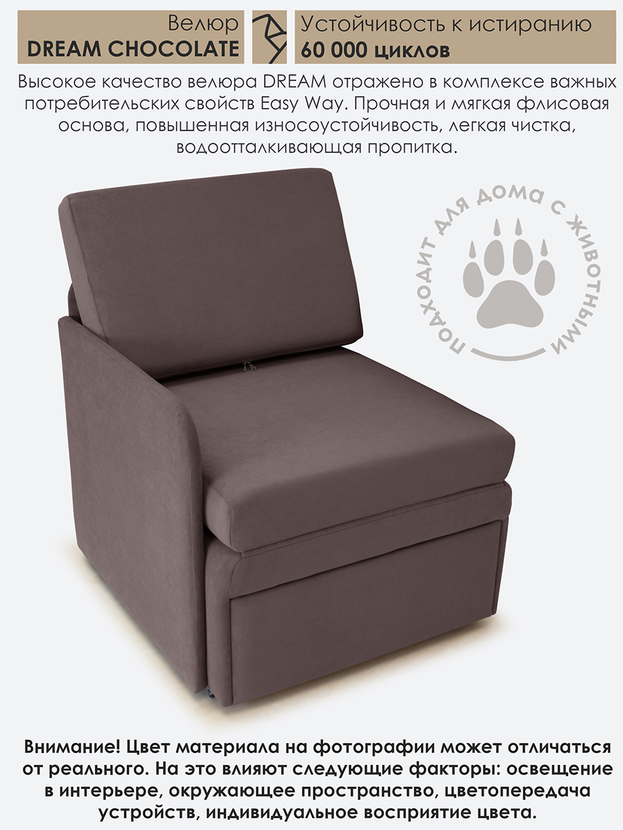 Материал обивки: Велюр. Съемный чехол только на подушке спинки.
