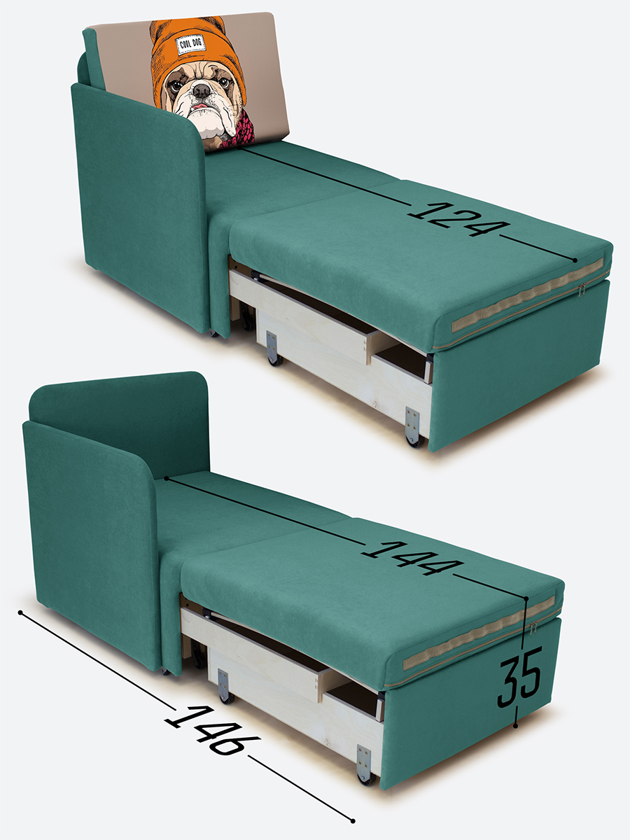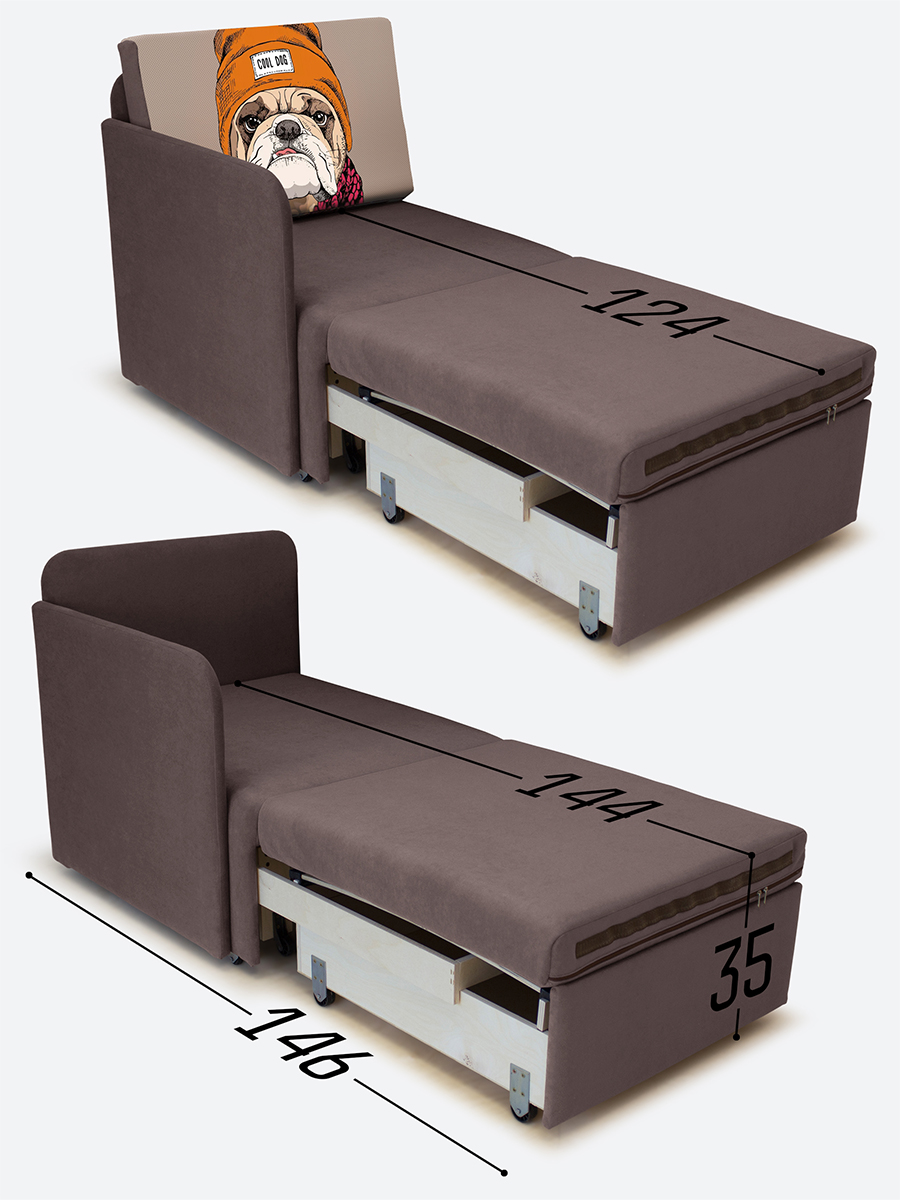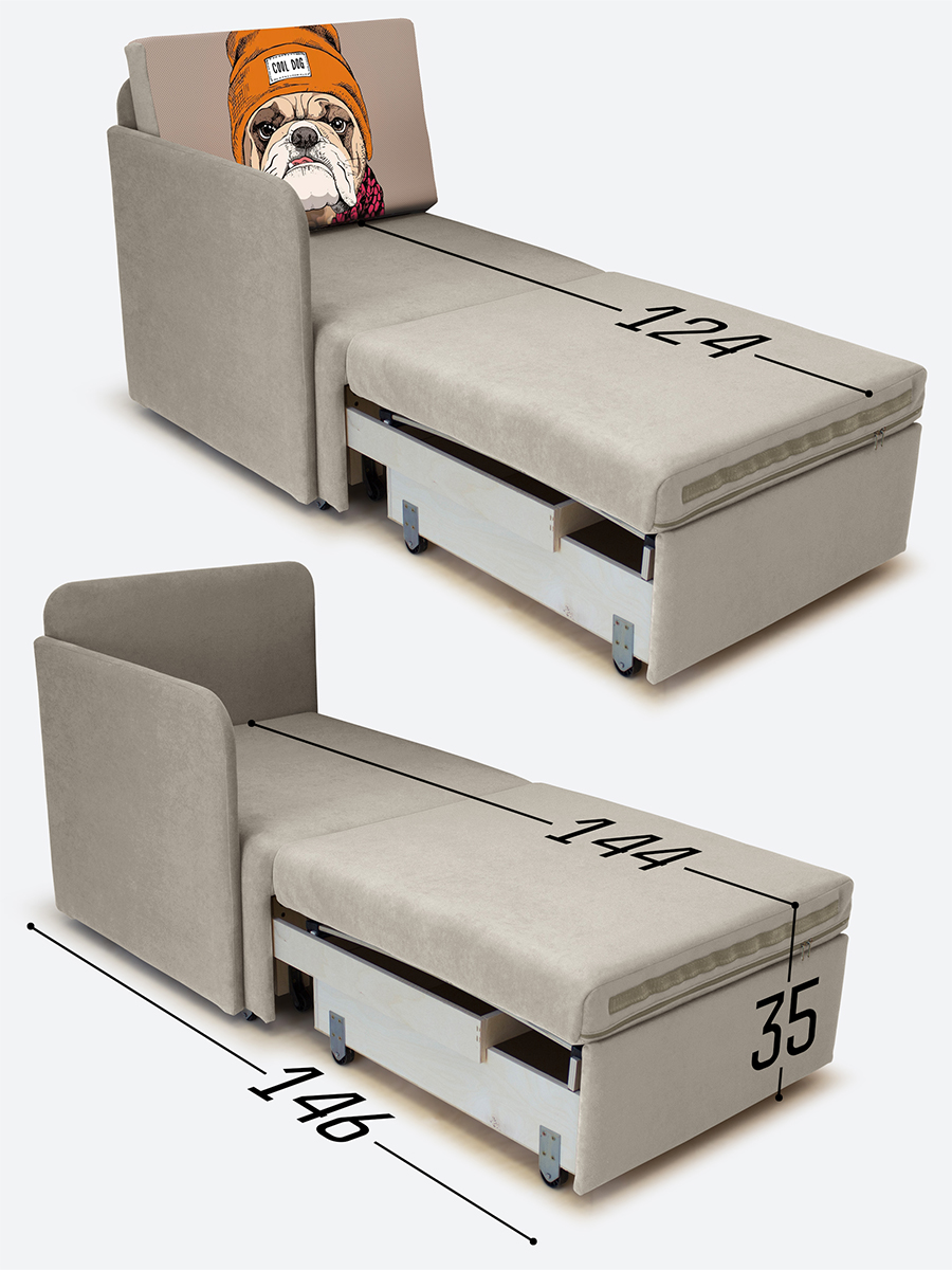 - спальное место, когда кресло разложено на 2/3 длины (кушетка/на вырост) - 65х144х35 см.