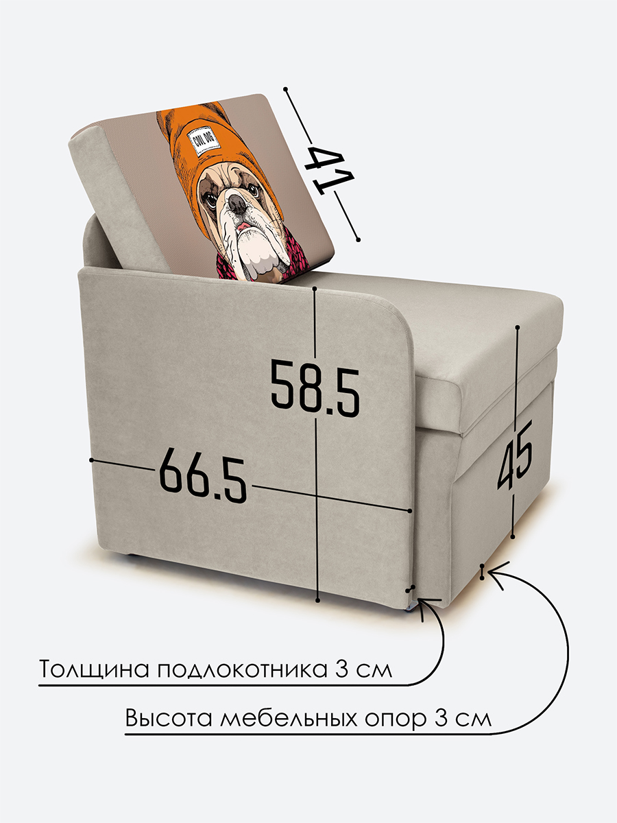 Обращаем Ваше внимание, что в разложенном виде кресло-кровать может скользить на глянцевом полу, т.к. стоит на двух ножках и колесах. Размер и конструкция колес не предполагает наличие стопора (тормоза). В комплект входят два антискользящих подпятника, которые нужно приклеить на задние ножки.